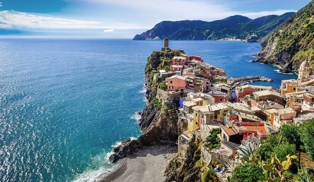 Cinque borghi, Riomaggiore, Manarola, Corniglia, Vernazza, Monterosso, che si affacciano sul mare.